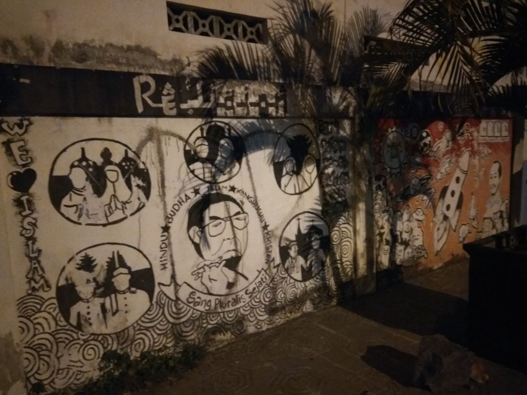 Nach dem netten traditionellem indonesischem all abendlichen Kaffee in netter Gesellschaft erklärte sich mein Couchsurfing Host dazu bereit mich zu den aktuellen Graffiti Hotspots Yogyakartas zu chaufieren 🙂